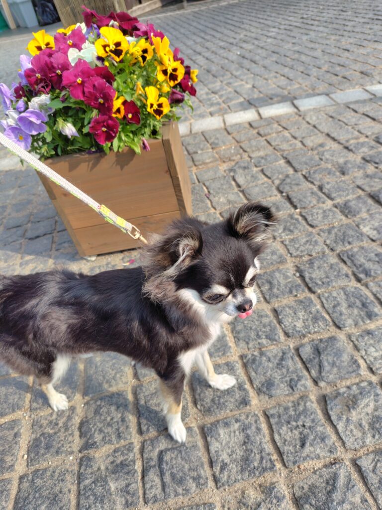 父ちゃん:「1歳を過ぎたばかりなんです、ヤンチャで飛び回っています。2歳になると落ち着きますか?」​などと、チワワ談義で情報交換!ゆず子のおかげで、素敵な出会いも満喫です✨。​