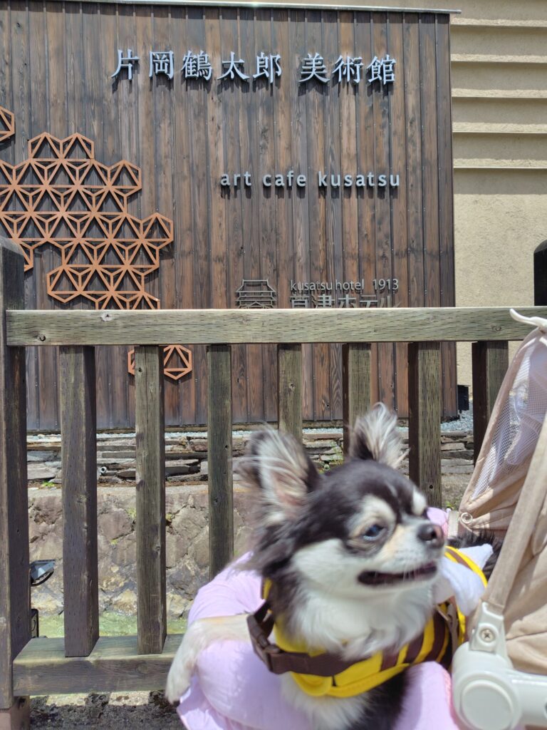 ガラス館を後にし、さらに西の河原方面へ進みます。​草津温泉には何回か来ていた父ちゃんですが、西の河原公園は初めて。公園の入口にある建物を見て、外観からもう興奮気味!そう、来たかった片岡鶴太郎美術館です!​犬と一緒に見学できることは調べてありましたが、念のためチケット売り場で確認してから中へ。様々な作品を家族で見学。犬と一緒に美術館に入れるなんて…来て良かったと心から喜ぶ父ちゃんです😭​